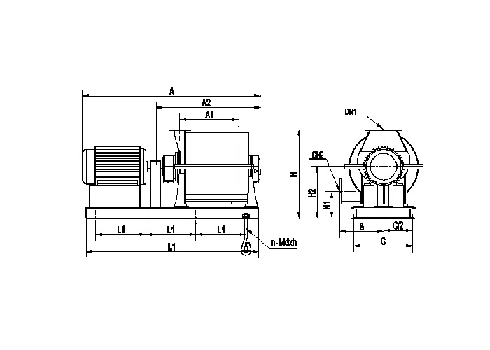 Type | A | A1 | A2 | B | C | H2 | H1 | H | L | L1 | DN1 | DN2 | n-Mdxh |