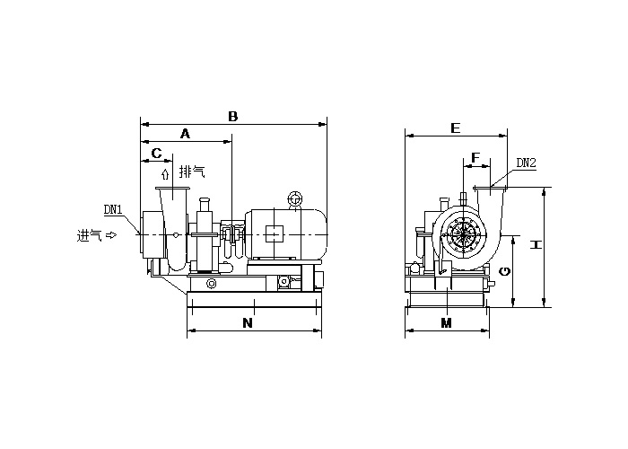 型号 | A | B | C | DN1 | DN2 | E | F | G | H | M | N |