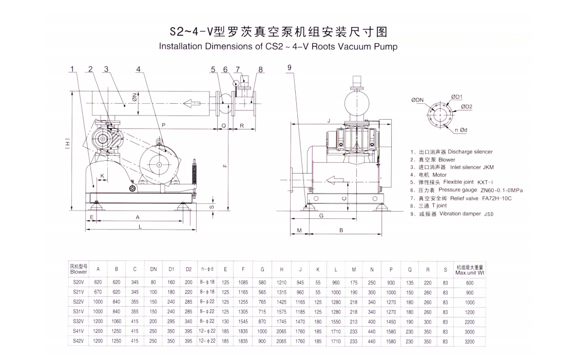 S系列罗茨欧陆娱乐性能表 Performance Table of Series S Roots Blowers | ||||||||||||||||||||||||||||||